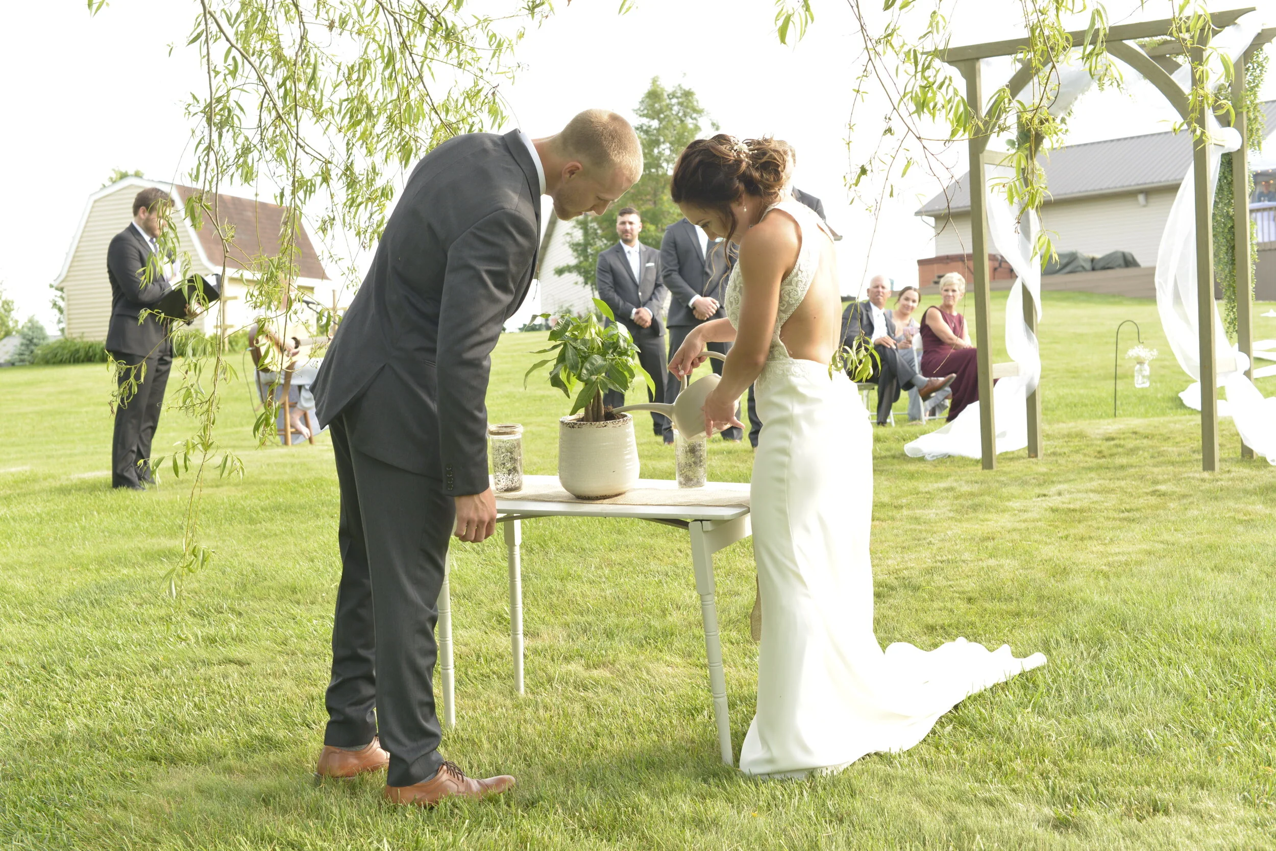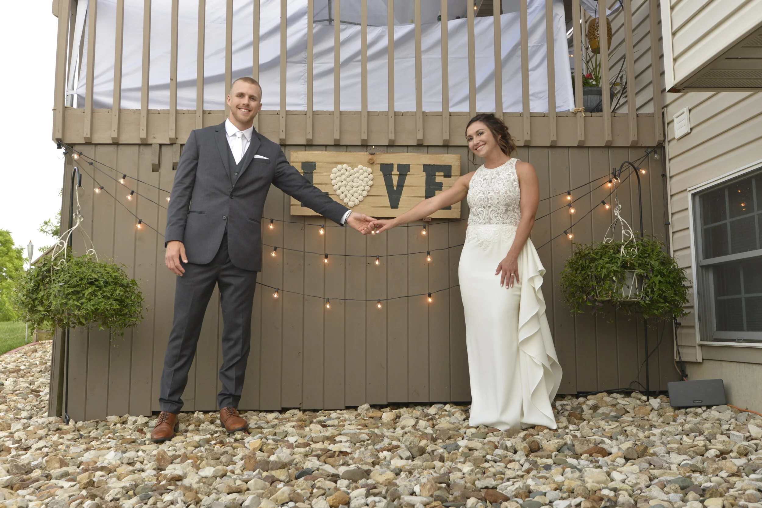 They had four weeks to turn the yard into a wedding venue. They needed to plan for potential rain, find a caterer on short notice, and finish a big list of yard and home projects, like restaining and adding skirting to their deck. Jordan and Austin came home from Ames every weekend to help.