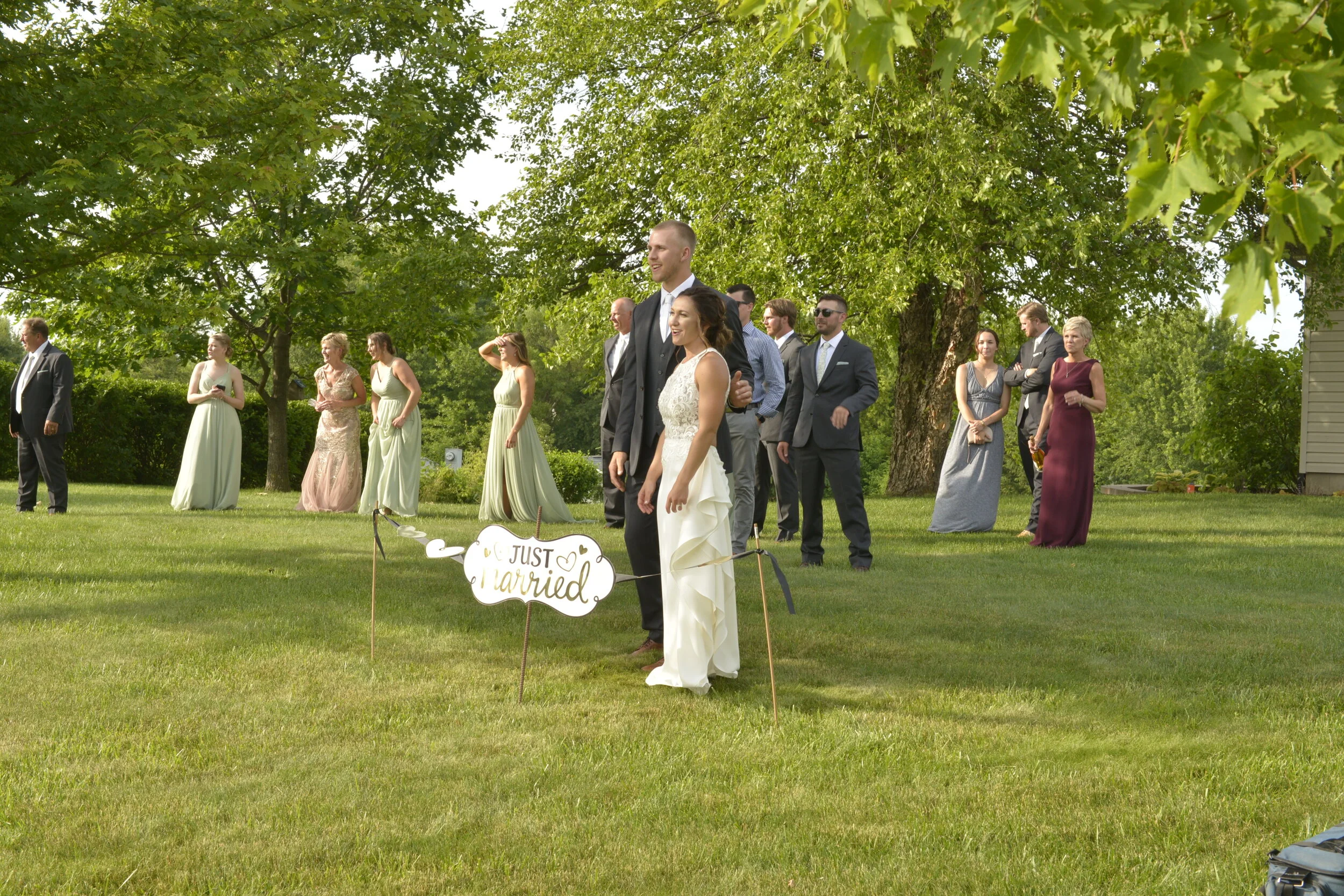 “They wanted to get married by the willow tree, so we got an arbor, and tents since we didn’t know what the weather would be like,” said Laurie. “We made the back deck into a covered dance area. We literally moved all our furniture out of our living room and converted it into a reception hall.”